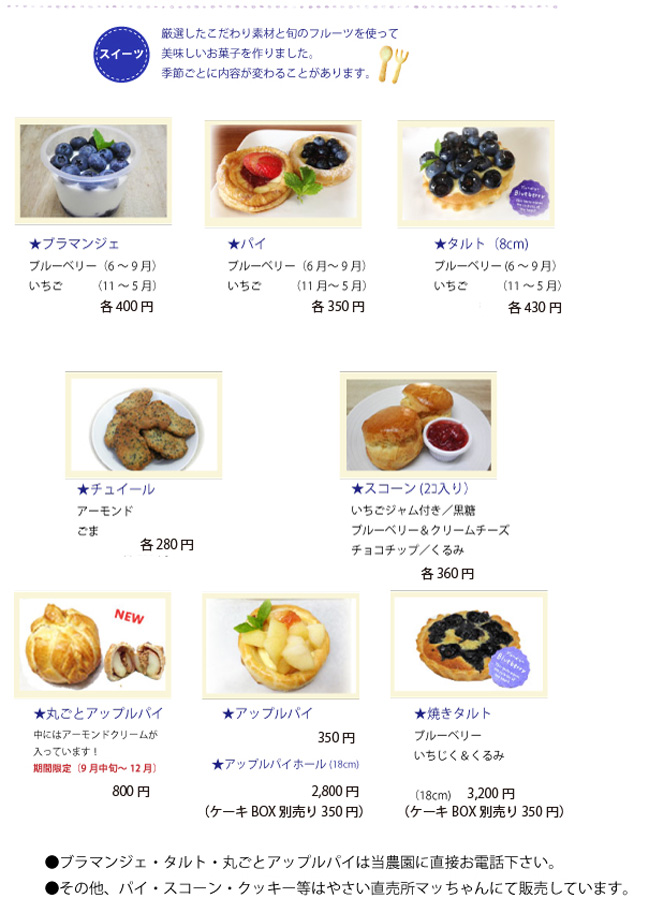 ★ ジャムは地方発送も賜ります。★ スイーツは、取りに来ていただける方のみお電話での注文を賜ります。★ ご予約は2日前までにお願いいたします。